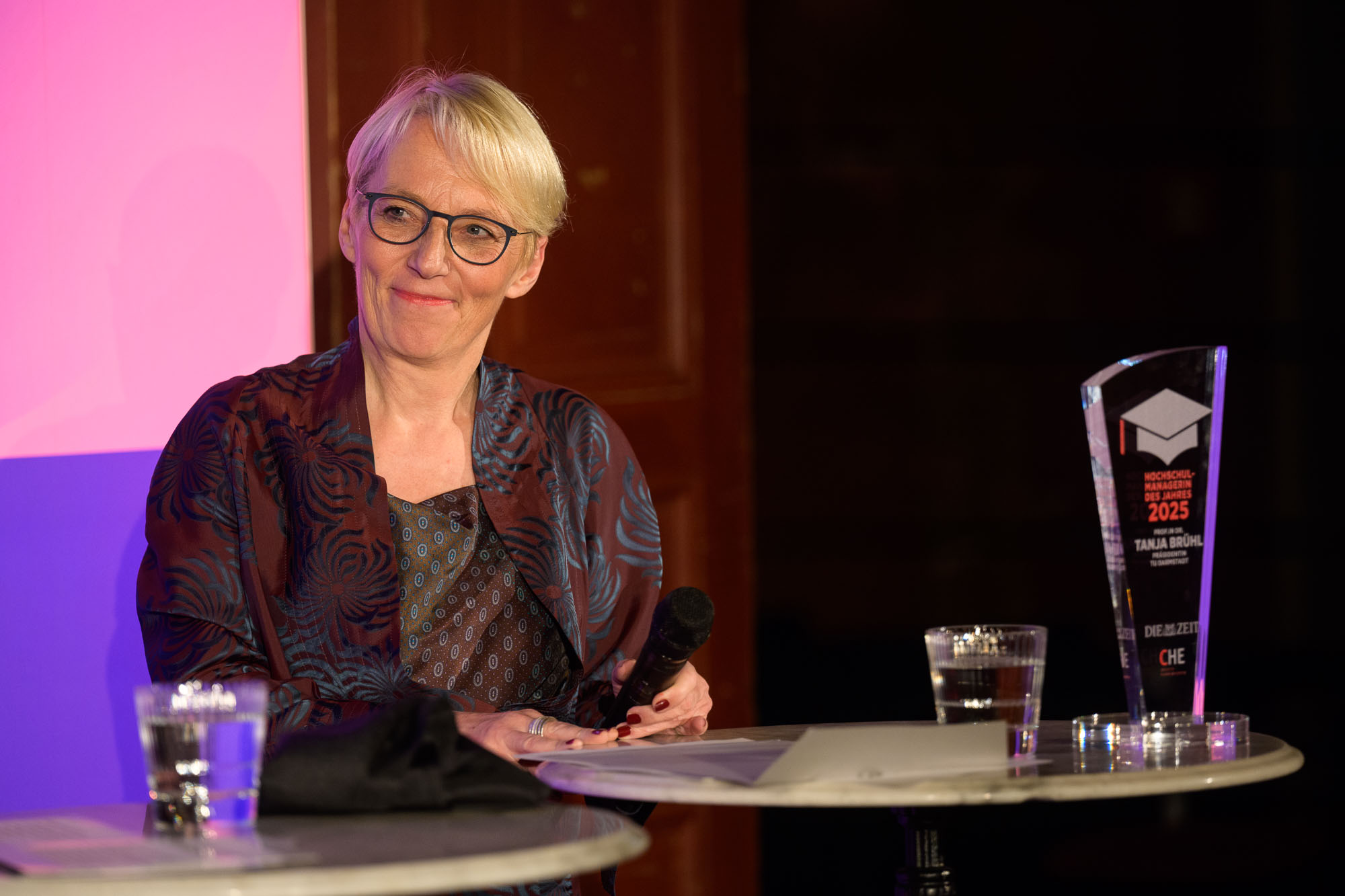 Tanja Brühl, Hochschulmanagerin des Jahres 2025 | Foto: Phil Dera für DIE ZEITProf. in Dr. Tanja Brühl, seit 2019 Präsidentin der Technischen Universität Darmstadt, wurde gestern Abend, am 20. November 2025, zur Hochschulmanagerin des Jahres 2025 gekürt. Die Auszeichnung wird von der Wochenzeitung DIE ZEIT und dem CHE Centrum für Hochschulentwicklung vergeben. Mit dem Preis werden herausragende Führungsleistungen im deutschen Hochschulwesen gewürdigt.