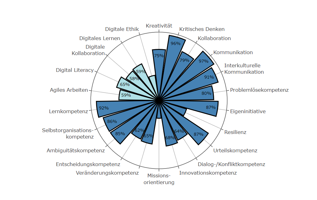 „Die unterschiedlichen Fächerprofile weisen darauf hin, dass sich die Förderung von Future Skills an den Anforderungen typischer Berufsfelder orientiert“, so Horstmann weiter. „Für die Curriculumsentwicklung ist das eine zentrale Erkenntnis, um fachbezogen über die Priorisierung von Future Skills zu diskutieren.“